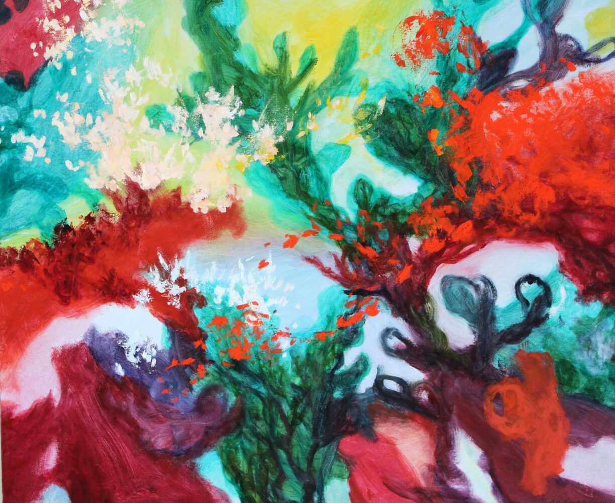 Colors of Humanity is a creative piece conceived as part of the Weaving and Reweaving project, an interactive musical experience. It was at the church of Saint-Apollinaire in Quebec that visual artist Benoît Lévesque took inspiration and created this painting based on the music of Othman Wahabi Blues and La Famille Mélanger.