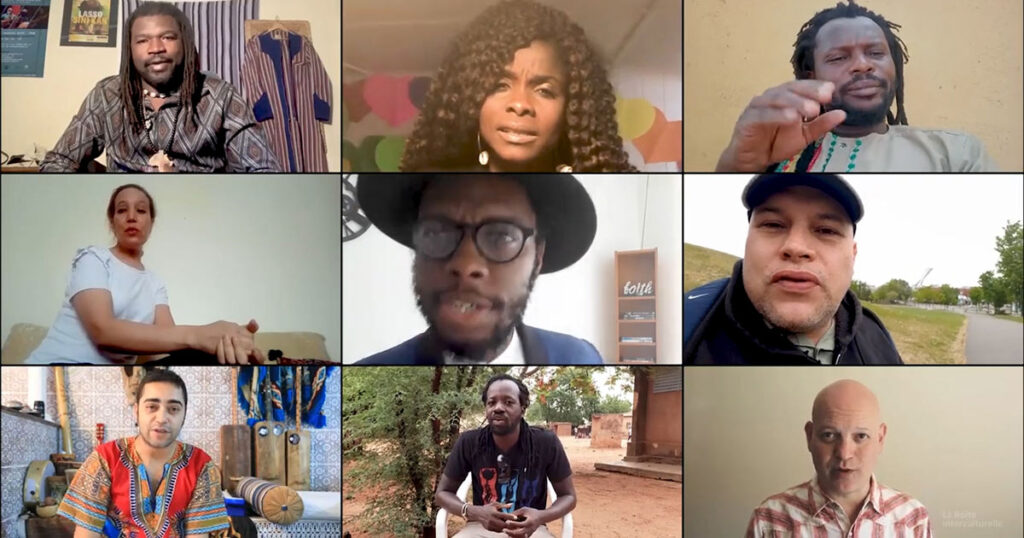 For the Music as a tool for dialogue project, La Boîte has created 27 video clips by collaborating with musicians from Canada, Algeria, Morocco, United States, Chile, Côte d’Ivoire, Burkina Faso, Panama , Ghana, England, Guadeloupe or even Gabon.