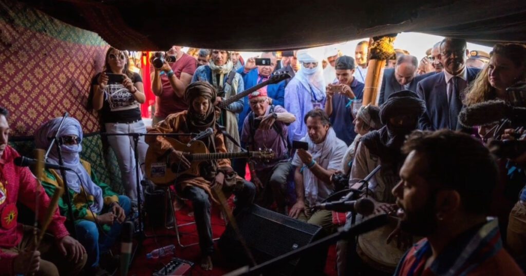 During The sun shines for all project in Morocco, the great indigenous drum was heard for the first time in the Sahara desert.